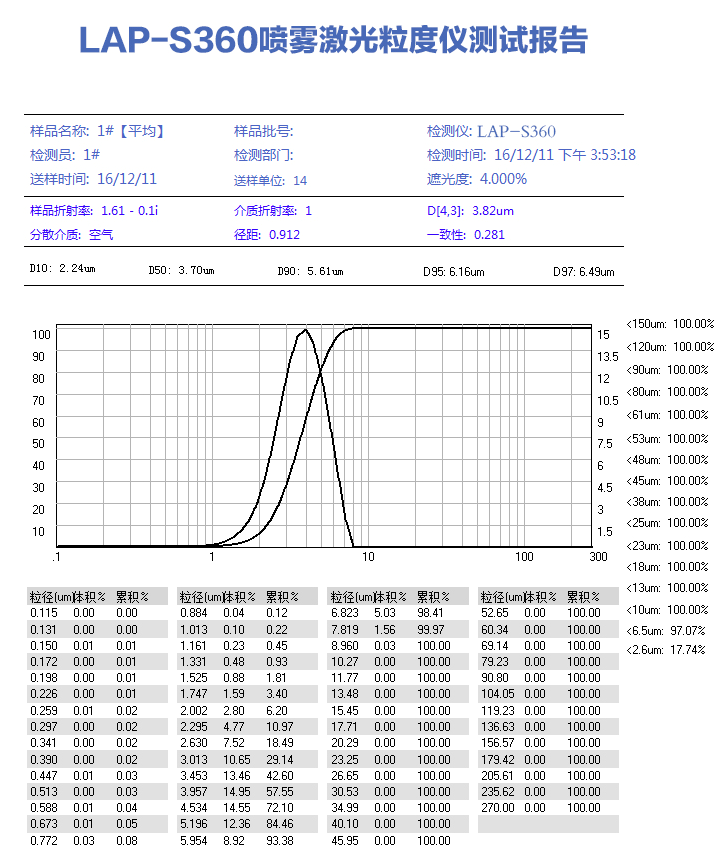 超寬量程:LAP-S360的(de)設計量程達到了(le)0.1μm~270μm,能夠滿(mǎn)足噴霧設備領域(yu)内絕大多數用戶(hù)的粒度📱測👅試需💁求(qiu)。