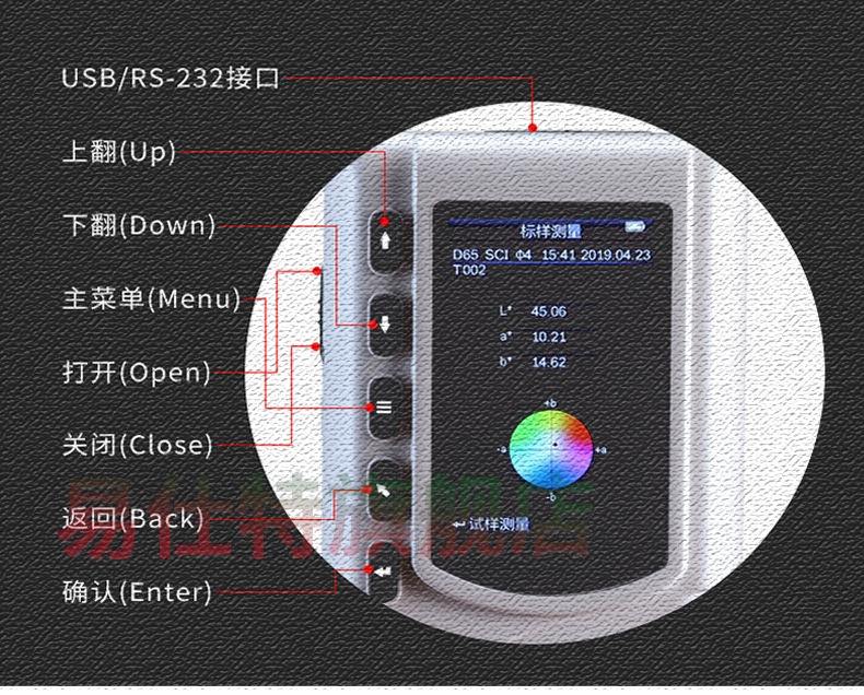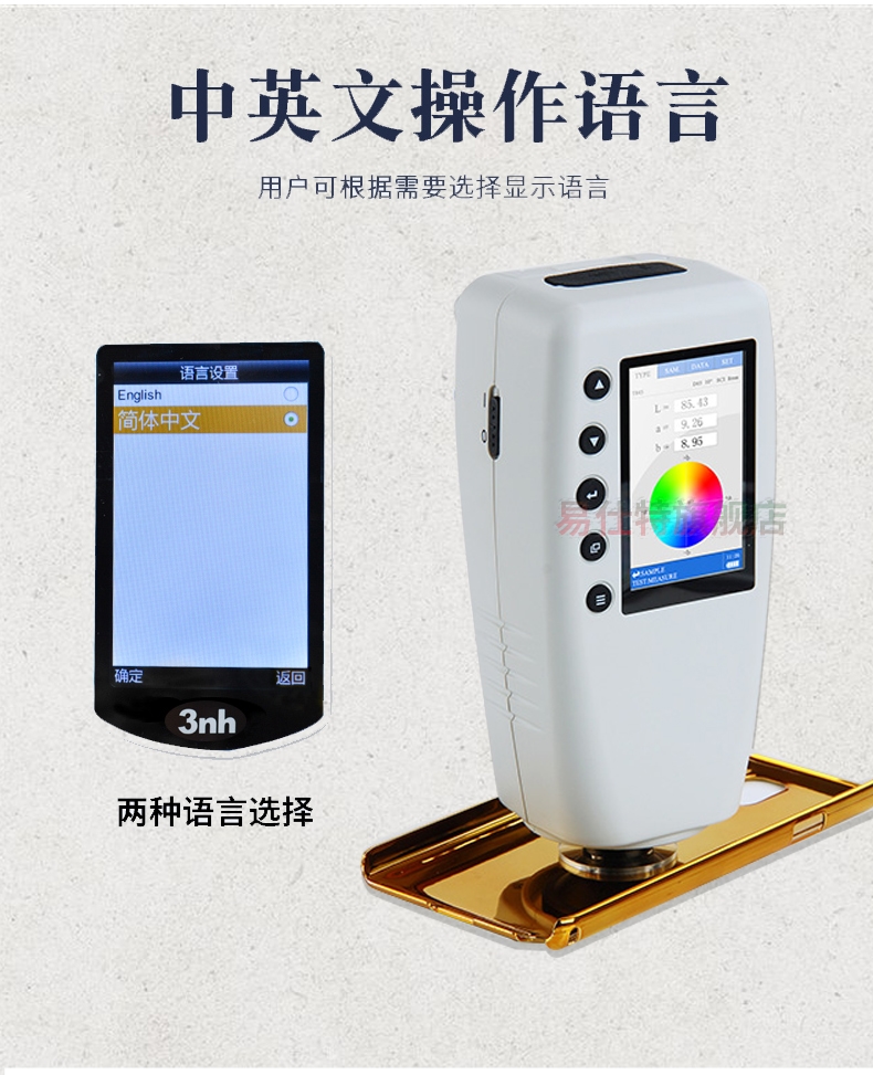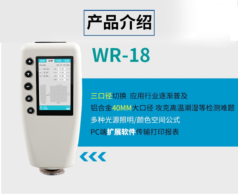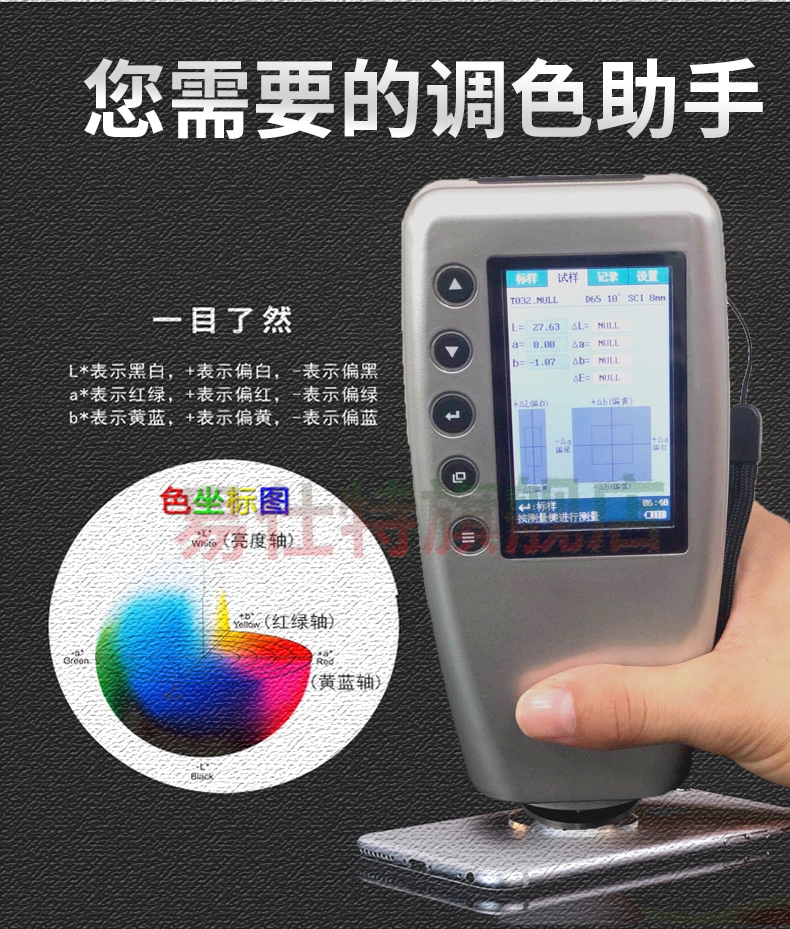 高精度(du)色差儀,廣泛應(yīng)用于塑膠、印刷(shua)、油漆油墨、紡織(zhi)、印染服裝等行(háng)🏃🏻♂️業的♌顔色管理(li)領域,根據CIE色空(kōng)間的Lab,Lch原理,測量(liang)顯示出樣品與(yǔ)被測樣品的色(se)差△E以及 △Lab值。适合(he)企業内、外部色(se)彩評價和數據(jù)管控。