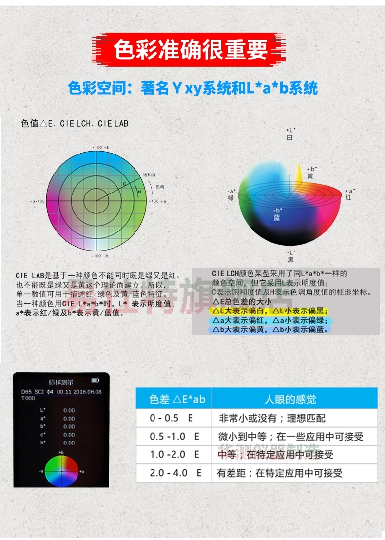 高精度色差儀(yí),廣泛應用于塑(su)膠、印刷、油漆油(yóu)墨、紡織、印染⚽服(fu)👣裝等行業的顔(yá)色管理領域,根(gen)據CIE色空間的Lab,Lch原(yuan)理,測量顯示出(chū)樣品與被測樣(yang)品的色差△E以及(ji) △Lab值。适合企業内(nèi)、外部色彩評價(jia)和數據🍓管控。