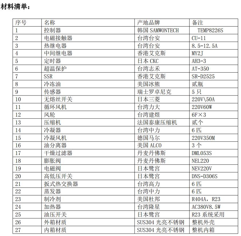9. 制冷劑:R404a / R23(臭氧(yǎng)耗損指數均爲 0)